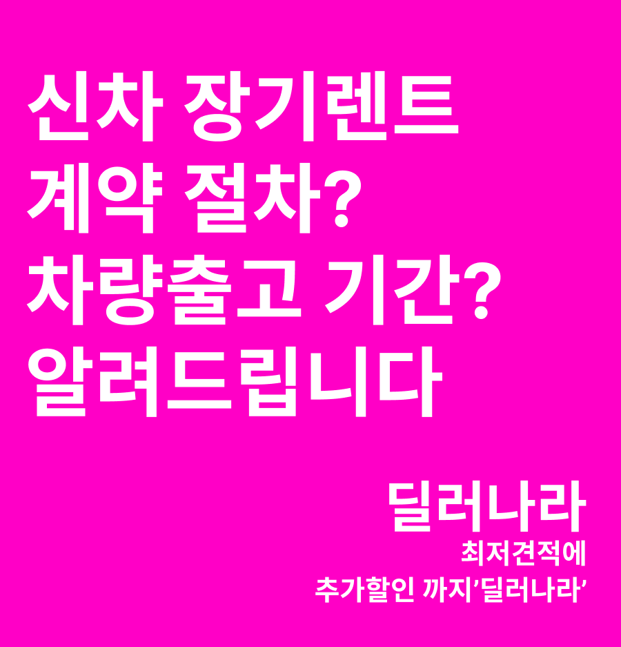 오늘은 많은 분들이 헷갈려하시거나 궁금해하시는 분들을 위해 신차장기렌트 계약절차 및 차량출고까지 과정을 상세하게 설명을 드리고자 합니다.