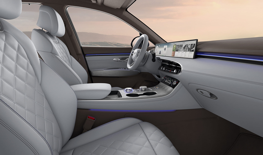 제네시스 전기차로, 프리미엄 감성에 정숙성과 강력한 주행 성능을 더한 것이 장점입니다.