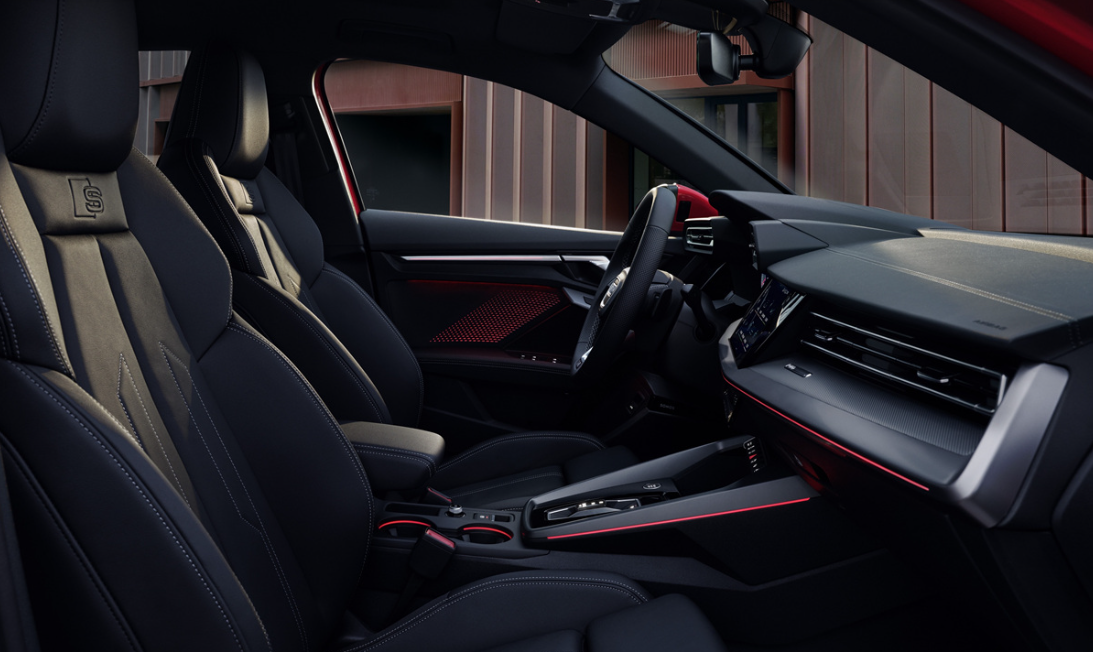A3 40 TFSI 트림은 바디컬러 사이드미러와 크롬 윈도우 몰딩이 세련된 이미지를 선사하며, A3 40 TFSI 프리미엄 모델은 S라인 익스테리어 패키지를 통해 한층 더 공격적이고 역동적인 전면부를 자랑합니다. 다크크롬 라디에이터 그릴과 다크 리퀴드 크롬 에어 인테이크가 그 특징을 더합니다.