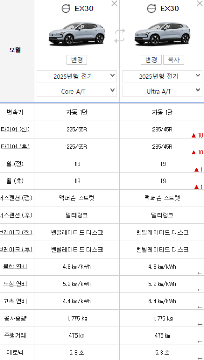 | 사양 | 옵션 | 상세 | 코어 | 울트라 |