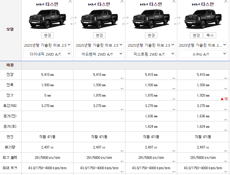 ✅ 타스만 기본 모델 가격
