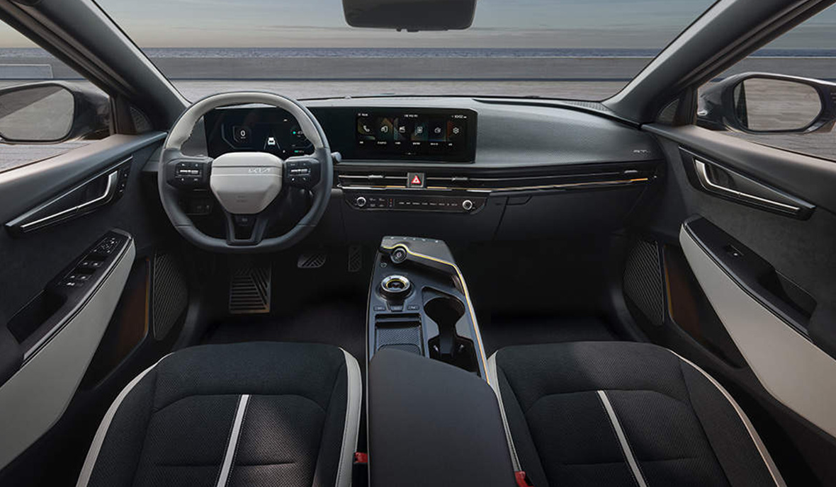 2025년형 EV6에서 새로운 디자인 요소들이 추가되어 고급감이 높아졌습니다. 수평적인 조형을 기반으로 한 파노라믹 커브드 디스플레이와 새로운 앰비언트 라이트가 적용되어 실내 분위기를 한층 더 세련되게 만들었습니다.