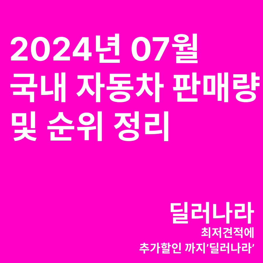 2024년 07월 국내(기아,현대,제네시스,르노등) 자동차 판매량 및 순위