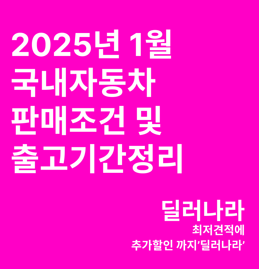 2025년 1월 자동차 판매조건 및 출고기간(현대/기아/제네시스/르노/쉐보레)