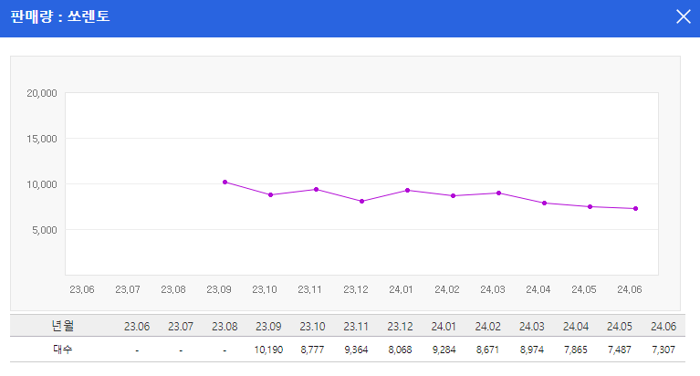 기아 쏘렌토의 2024년 판매량을 보면, 1~6월까지 평균 7000-9000천대 가량으로 6월을 제외하고는 신형으로 재출시한 카니발 보다 판매량이 높습니다.